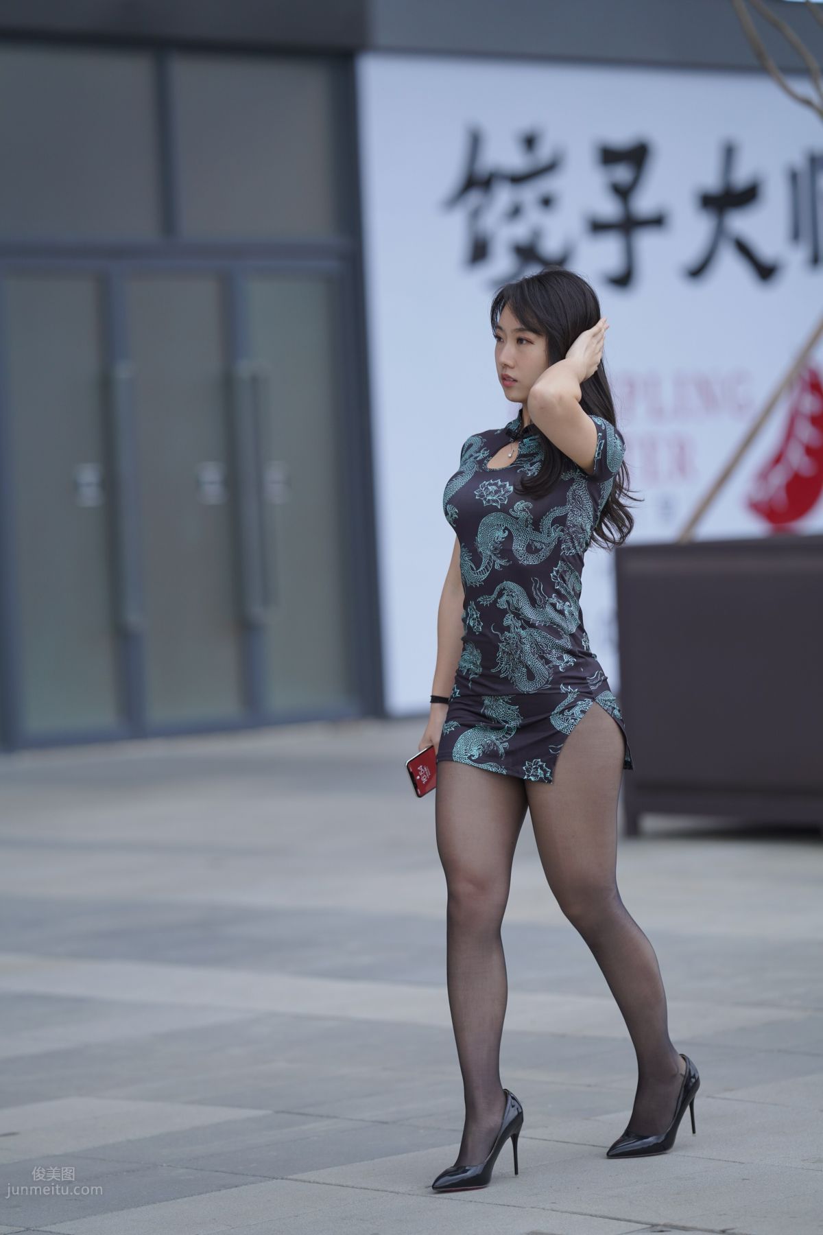 [魔鏡街拍] 106 性感的黑絲改良旗袍少婦 (346)