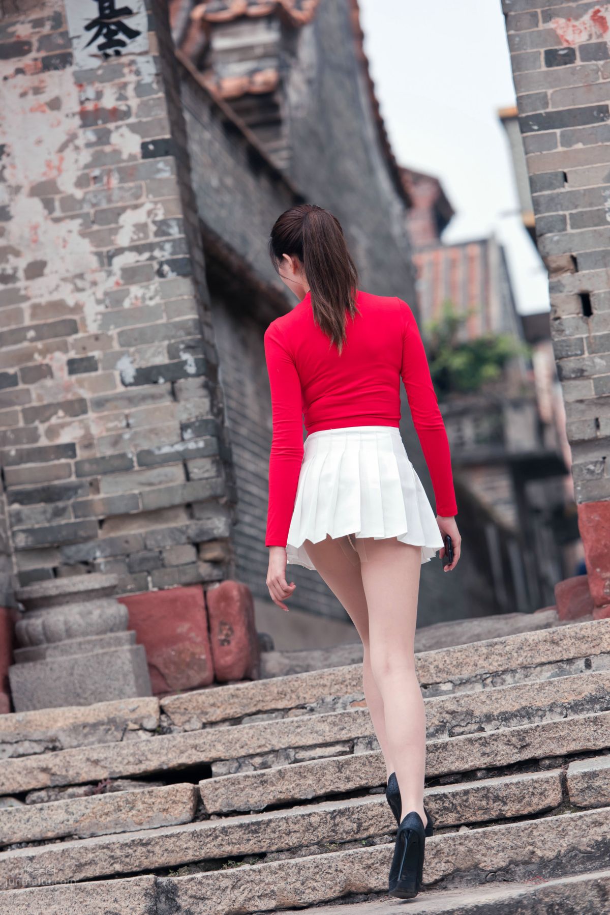 [魔鏡街拍] 118 紅衣白裙極品絲足美女春光鬧古村 (25)